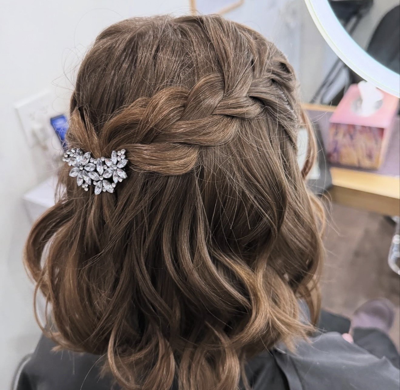 A trial updo gives both you and your stylist the chance to fine-tune the look and make sure it’s exactly what you envision. Bringing inspo pictures is a great touch—it helps communicate your style preferences and ensures your updo turns out perfect. It gives you the chance to see how everything comes together, make adjustments if needed, and feel confident leading up to your big day. Plus, doing a trial for socials or other pre-event gatherings helps build excitement and lets you celebrate with loved ones ahead of time.